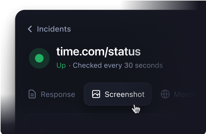 We record your API's error message and take a screenshot of your website being down so that you know exactly what happened.